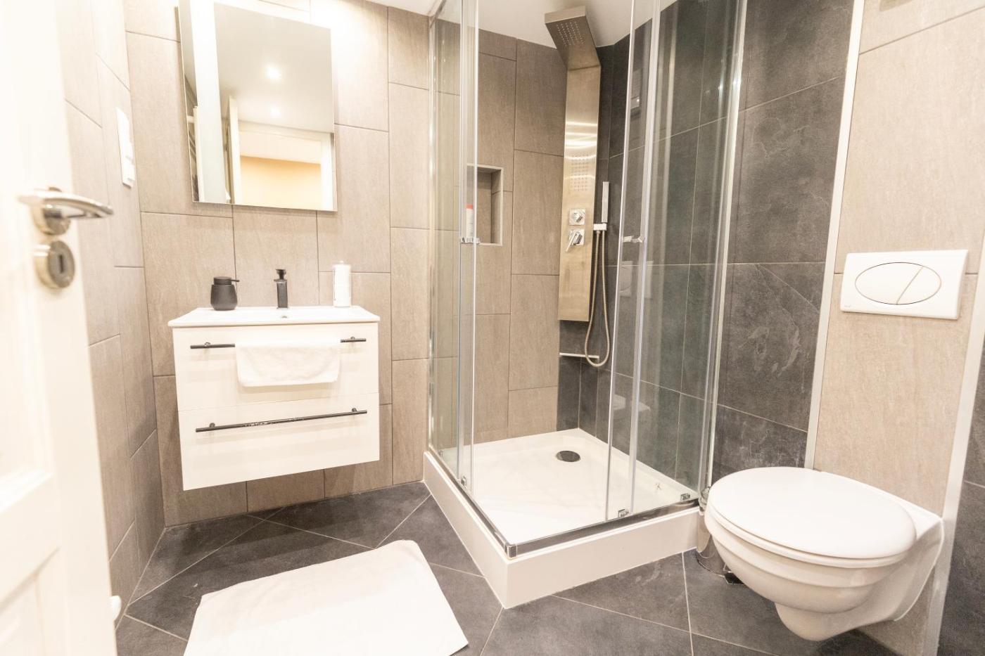 One-Bedroom Apartment. Featuring a private entrance, this air-conditioned apartment consists of a kitchenette, 1 bedroom and 1 bathroom with a shower and a hairdryer. The apartments kitchenette, which features a refrigerator and a microwave, is available for cooking and storing food. The apartment provides a flat-screen TV, a washing machine, a tea and coffee maker, a wardrobe as well as city views. The unit offers 1 bed.
